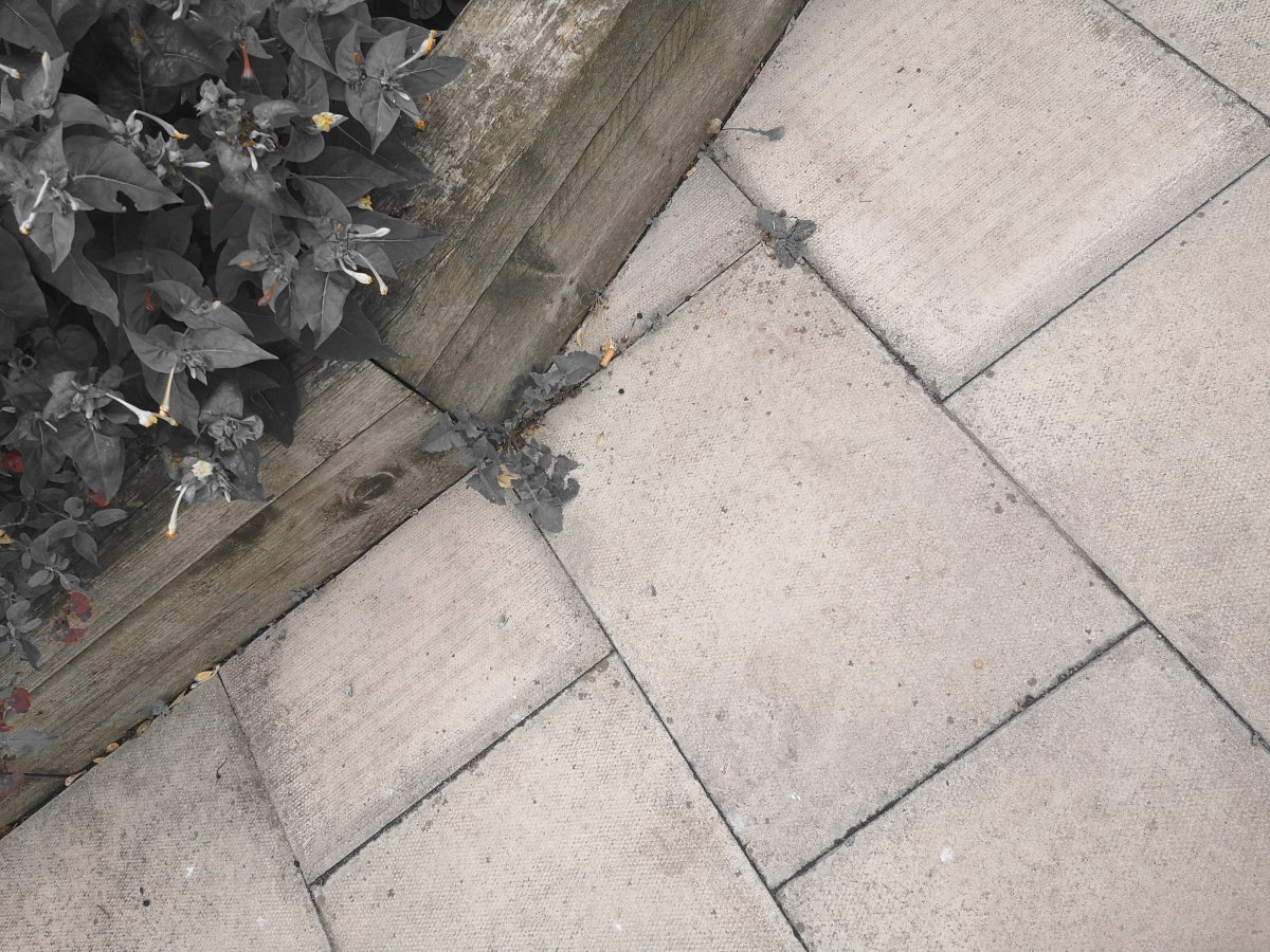 When reviewing the images I had collected, my attention was drawn to the small details in the photos that were a large part of what I remembered. I decided to edit these in a way that would explore drawing visual attention to the aspects that dominated my memory of the overall, big picture, experience. I chose colour as a direct way to evoke this, inspired by the 1998 drama/fantasy movie Pleasantville and the way it manipulates the viewers attention.